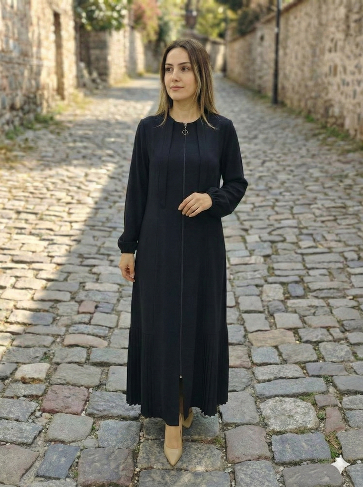 Bu ferace; sade çizgisiyle zarafeti, akıcı kumaşıyla konforu bir araya getirir. Gün boyu nefes alan yapısı, tok duruşu ve modern kesimiyle hem şehir temposuna hem özel anlara eşlik eder.