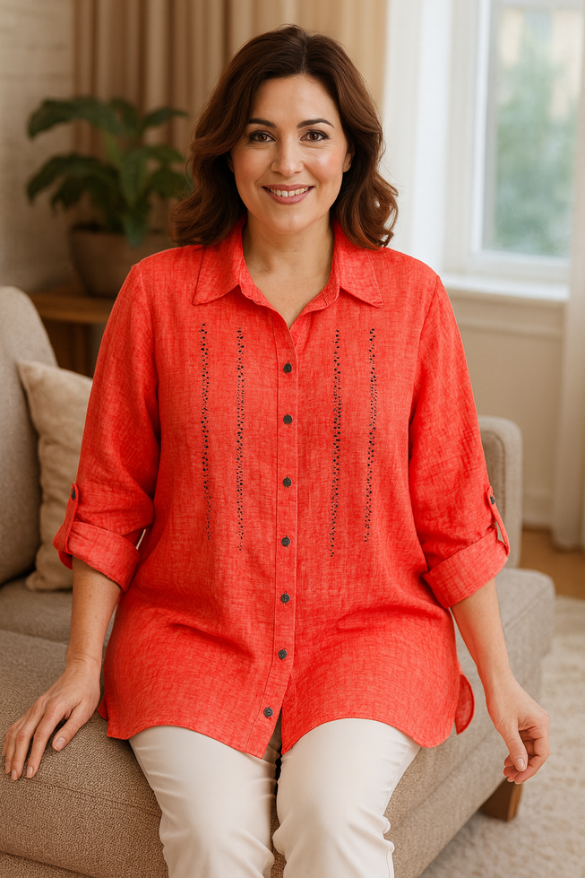 ✨ Yeni Sezon Taş Detaylı Keten Dokulu Tunik ✨